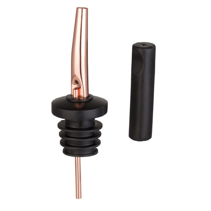 Ce verseur de bouteilles en acier inoxydable couleur cuivre est un outil de bar fonctionnel qui permet de verser de manière régulière et contrôlée des spiritueux et autres ingrédients liquides. Il s'insère directement dans le goulot de la bouteille et, grâce à son bec verseur précis, assure un débit propre et constant, idéal pour le whisky, le gin, le rhum, la vodka ou les liqueurs fluides. Cela permet de préparer des boissons de manière efficace et sans gouttes inutiles, ce qui est particulièrement avantageux dans le service professionnel des bars.