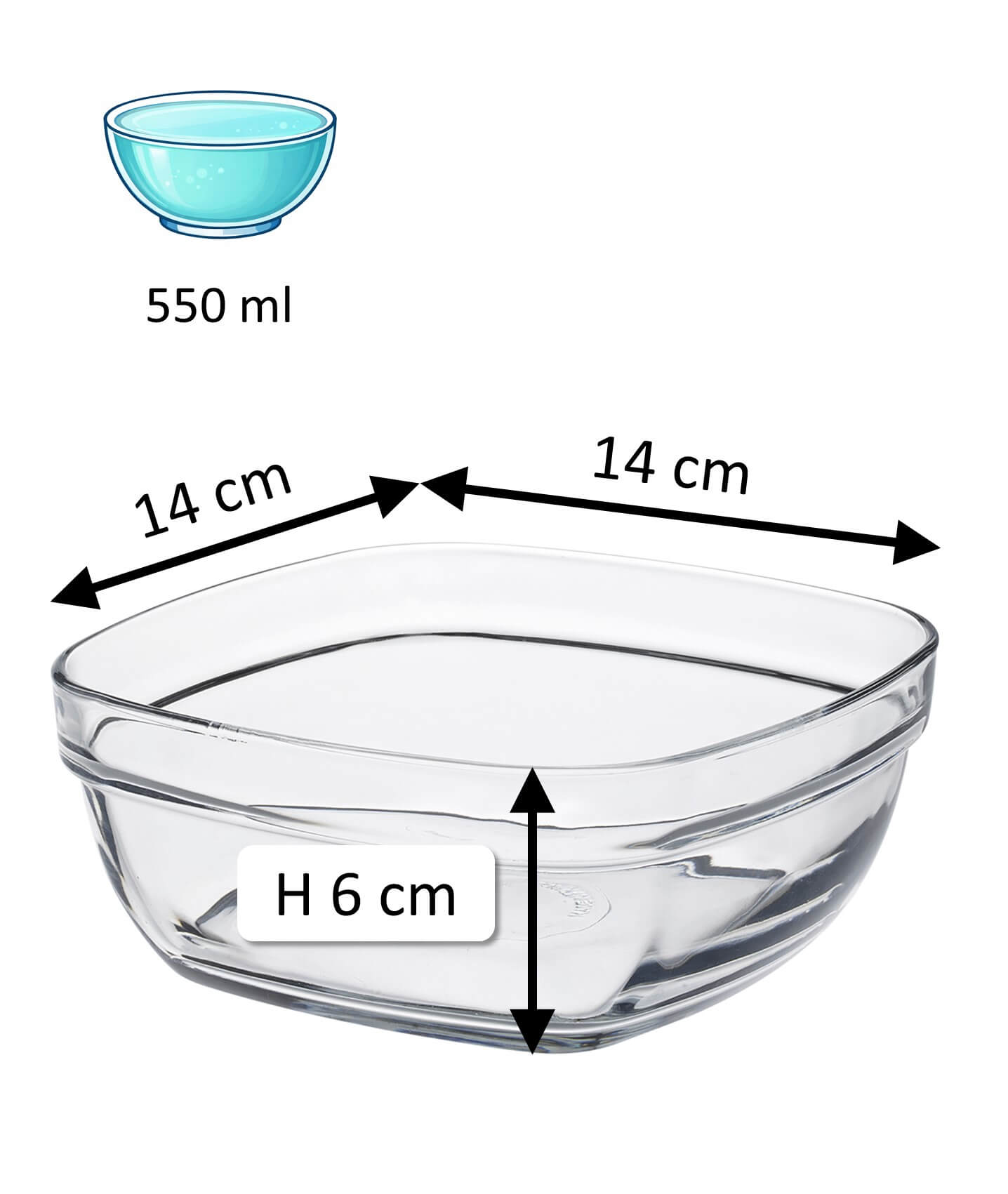 Cette coupelle empilable de 14 cm de côté fait également partie de la série Lys Carré. La coupelle presque carrée en verre trempé a une contenance de 550 ml et peut être empilée pour gagner de la place