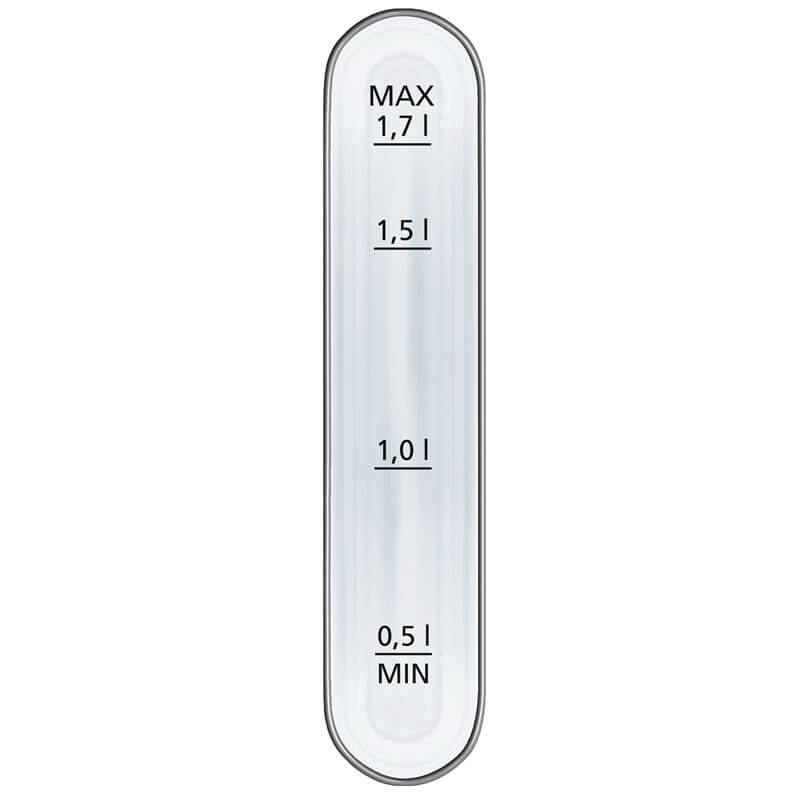 La bouilloire WK 20 INOX de Steba a une capacité de 1,7 l et un boîtier moderne en acier inoxydable. L'indicateur de niveau d'eau avec échelle graduée permet de lire clairement les niveaux 0,5 l / 1,0 l / 1,5 l / 1,7 l. La sécurité dans la cuisine est assurée par l'arrêt automatique et la protection contre la marche à sec, qui empêche la bouilloire de fonctionner sans liquide. Le filtre à particules amovible et l'élément chauffant dissimulé facilitent le nettoyage.