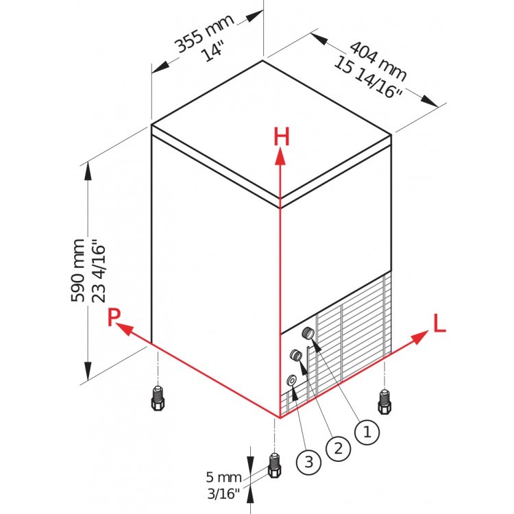Installation et qualité de l'eauUne installation professionnelle est nécessaire pour garantir des performances optimales. Nous recommandons en outre l'utilisation d'un filtre à eau afin d'optimiser le goût et la clarté des glaçons et de prolonger la durée de vie de la machine à glaçons.