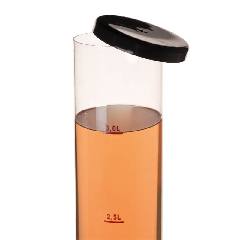 La colonne à bière transparente peut contenir 3 litres et comporte des repères de remplissage tous les 0,5 litre. Le « niveau » peut ainsi être lu rapidement et facilement. La colonne à boissons en plastique peut être entièrement démontée et nettoyée à fond sans aucun problème. La colonne à boissons est ainsi prête en un clin d'œil pour la prochaine tournée.