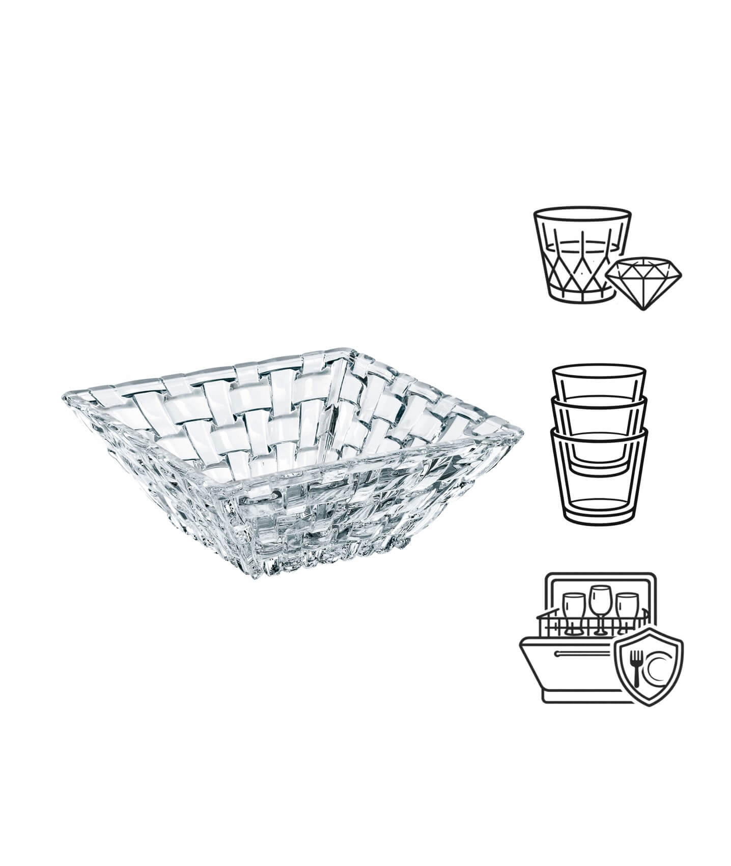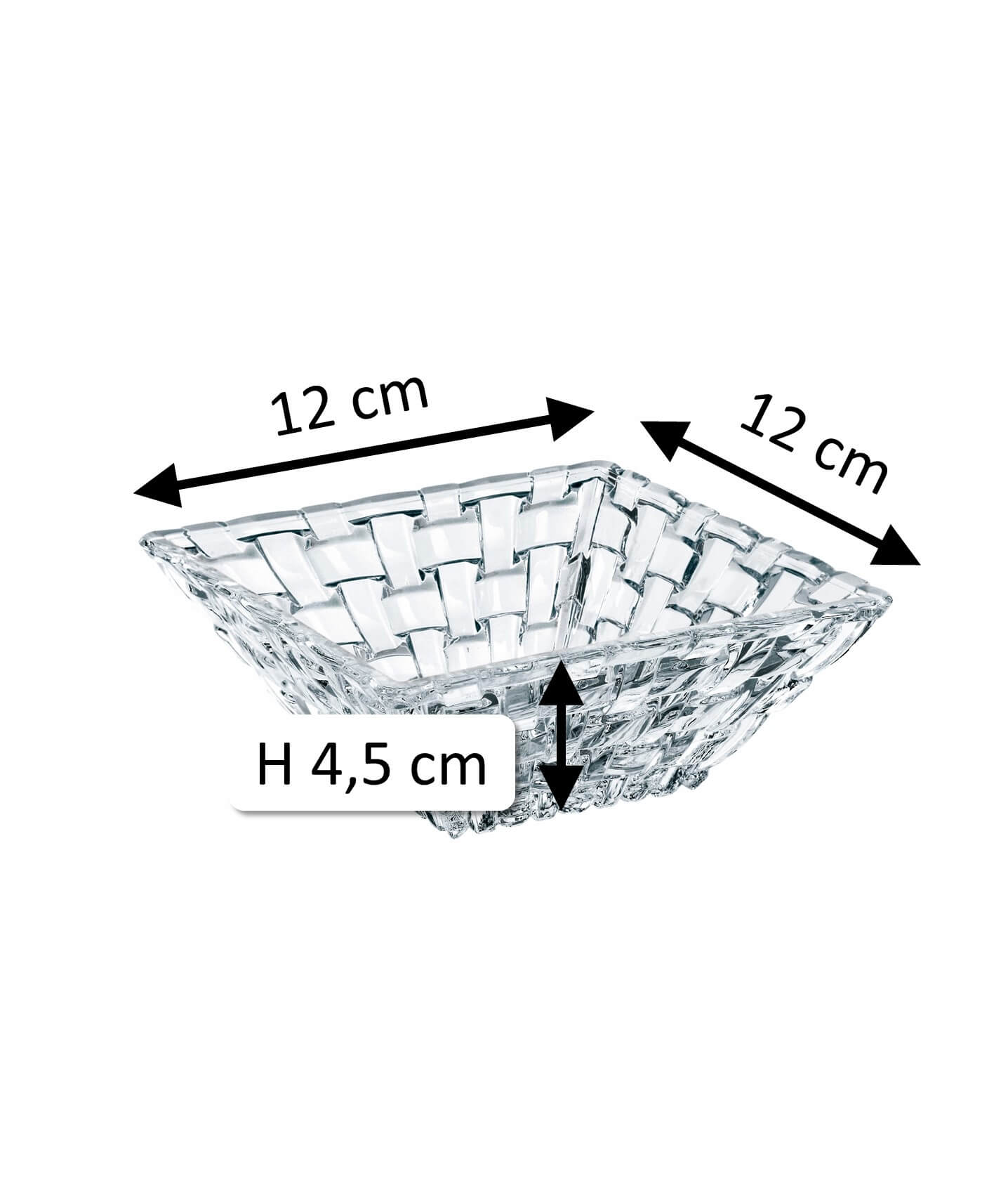 Les produits de la série Bossa Nova impressionnent non seulement par la qualité bien connue du verre Nachtmann, mais aussi par leur aspect tressé raffiné qui réfracte la lumière en un motif unique. Les coupes carrées en cristal ne font pas exception à la règle. Elles mesurent 12x12cm au bord et conviennent aussi bien pour les antipasti et les dips que pour les desserts.