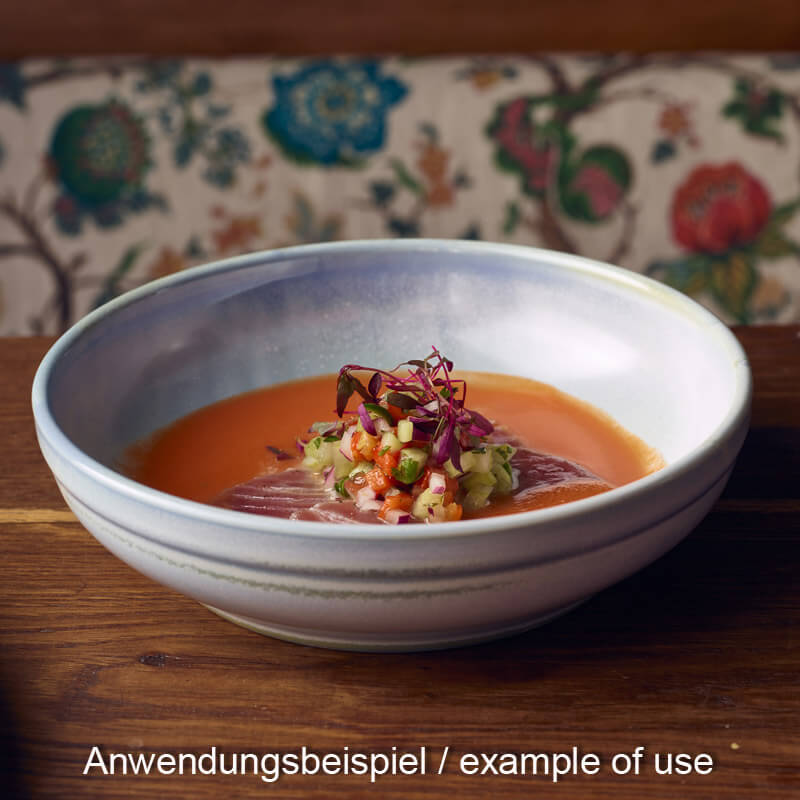 La coupe Terra Seafoam de 20 cm offre un cadre atmosphérique idéal pour les plats frais et colorés. Les douces couleurs de la mer se fondent dans un jeu de glaçures vivant et unique, résultat d'une cuisson à haute température qui confère à cette glaçure effet son aspect artisanal. Conçue pour un usage gastronomique quotidien, cette coupe est conforme à la norme BS4034 relative à la porcelaine professionnelle pour l'hôtellerie. Elle est donc particulièrement résistante à l'absorption d'eau et à la formation de fissures, durable et fiable dans le cadre d'un usage intensif. Les bords roulés augmentent sa durabilité, tandis que le pied poli protège les surfaces lors de l'empilage. Pratique au quotidien : passe au lave-vaisselle, au micro-ondes et au four. Qu'il s'agisse de bols, de salades, de pâtes ou d'entrées chaudes, la forme généreuse de ce bol en fait un compagnon polyvalent dans les restaurants, les hôtels et les bistros modernes.