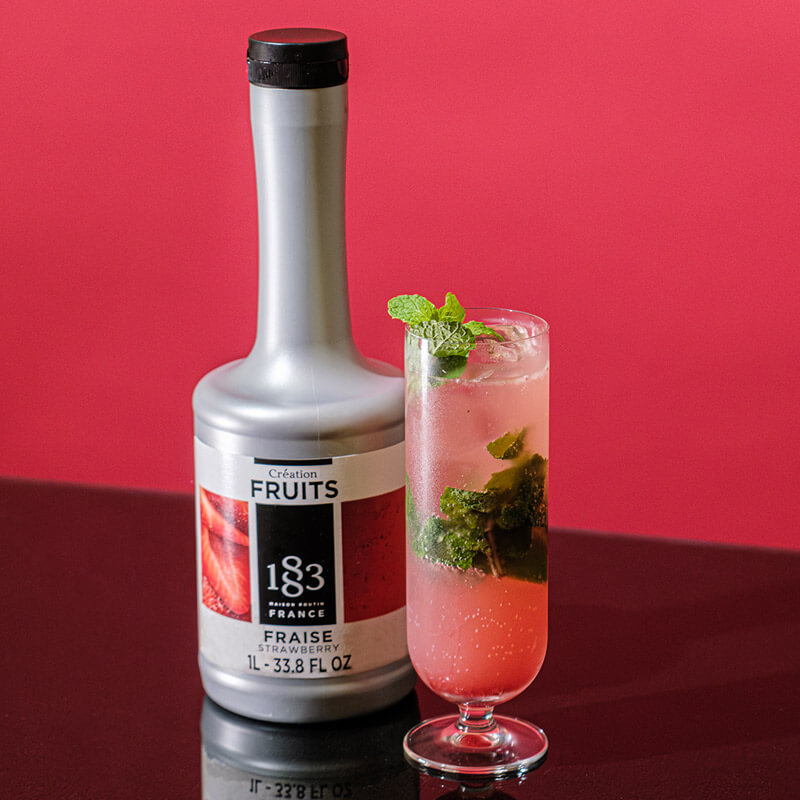 Création Fruits Fraise est un mélange de purée de fruits contenant 55 % de fruits et présentant une texture veloutée. Le goût fruité et floral des fraises fraîches est suivi d'une note sucrée qui rappelle la confiture maison. Cela fait du mélange de purée de fruits fraise Maison Routin 1883 le choix idéal pour les milkshakes et les cocktails fruités, même en dehors de la saison des fraises
