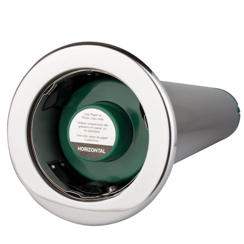 Avec une longueur de tube de 59,7 cm et un diamètre extérieur de 13,5 cm, le distributeur offre une capacité suffisante sans prendre beaucoup de place. Grâce à son système de manchon breveté, il s'adapte à des gobelets d'un diamètre compris entre 56 et 81 mm. Parfait pour les gobelets à café et à expresso à emporter. Un ressort intégré garantit que les gobelets sont toujours dans une position parfaite pour être retirés