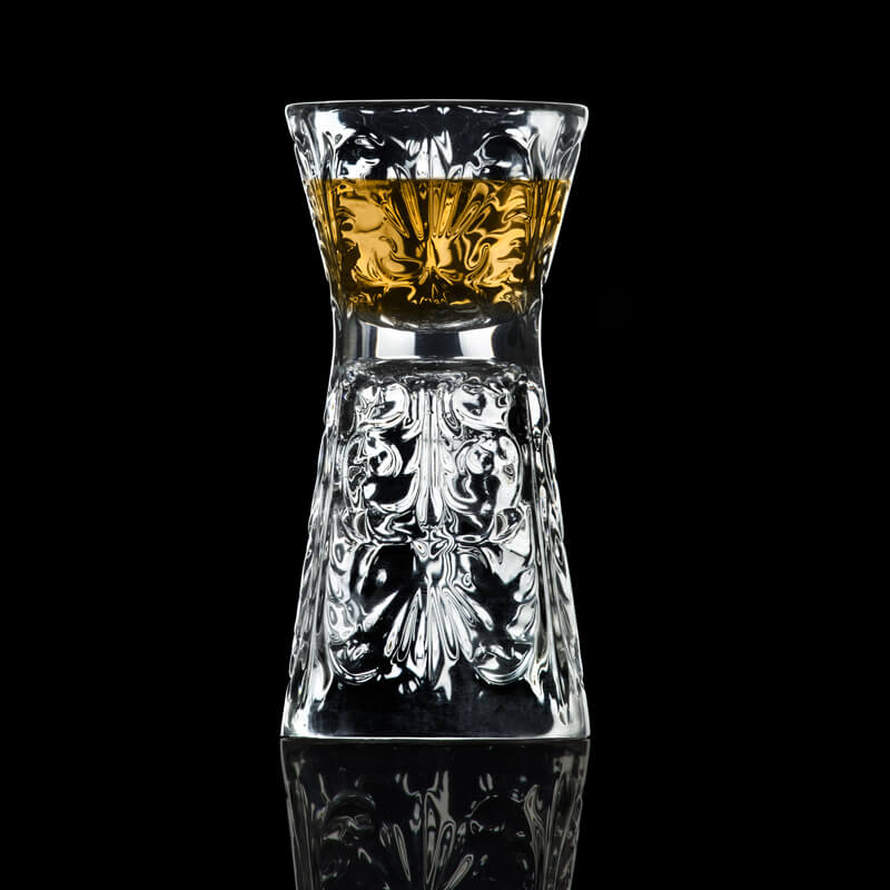 Le jigger en verre cristal fait également bonne figure comme verre à liqueur inhabituel.