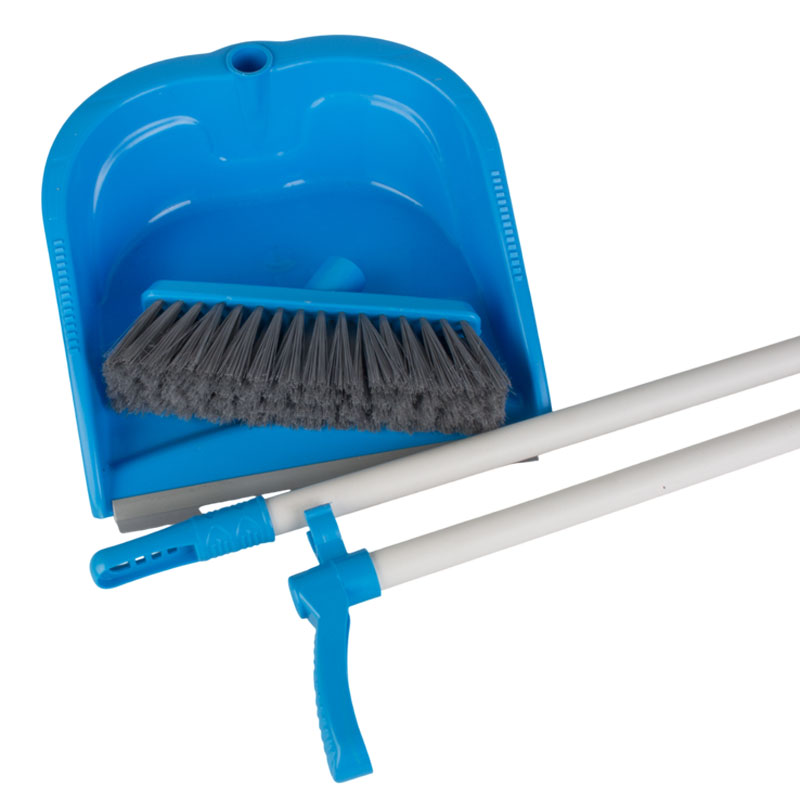 Informations sur le produit "Ensemble balai et pelle, bleu - long manche"