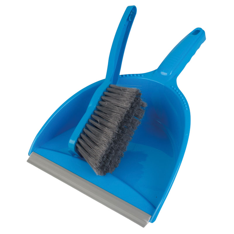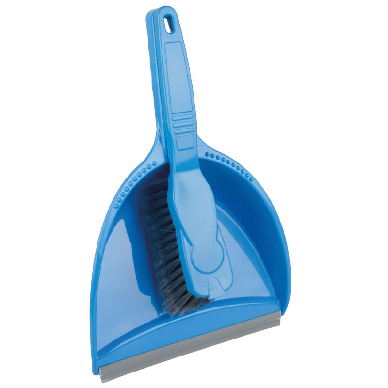 Ensemble balayette et pelle à main avec balai, bleu - manche court