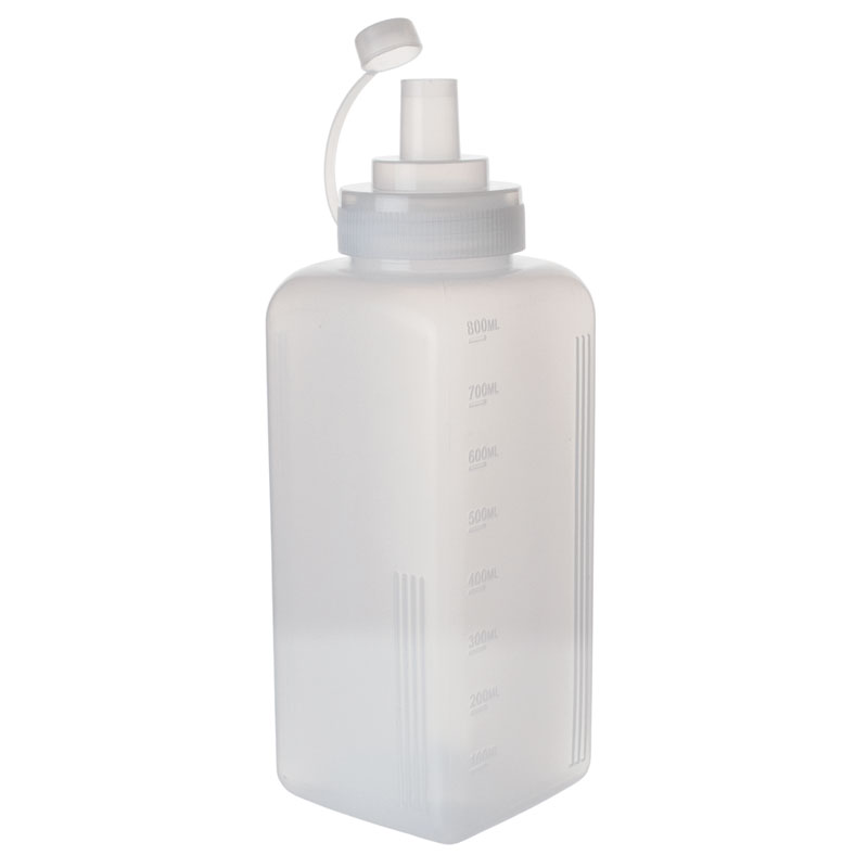 Les bouteilles souples sont parfaites pour les stations en libre-service, mais aussi sur les tables des clients dans les diners et les fast-foods. Elles sont également très polyvalentes dans la cuisine et au bar. Ces bouteilles souples incolores sont fabriquées en polyéthylène basse densité. Le matériau est robuste et sans BPA. Une échelle pratique indique la quantité de remplissage de 100 ml à 800 ml par incréments de 100 ml. Grâce à leur forme carrée, les bouteilles se rangent les unes contre les autres et prennent très peu de place. Afin de protéger le contenu, chaque bouteille est équipée d'un bouchon pour le bec verseur, qui est fixé et ne peut pas se perdre.