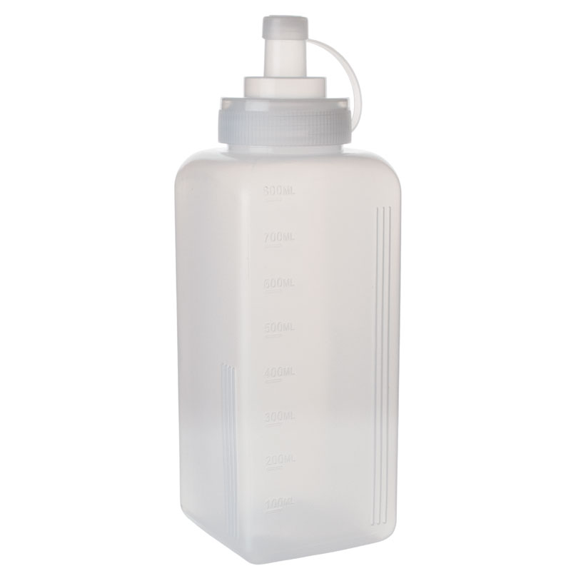 Informations sur le produit "Flacon souple carré, polyéthylène transparent - 800 ml (3 pièces)"