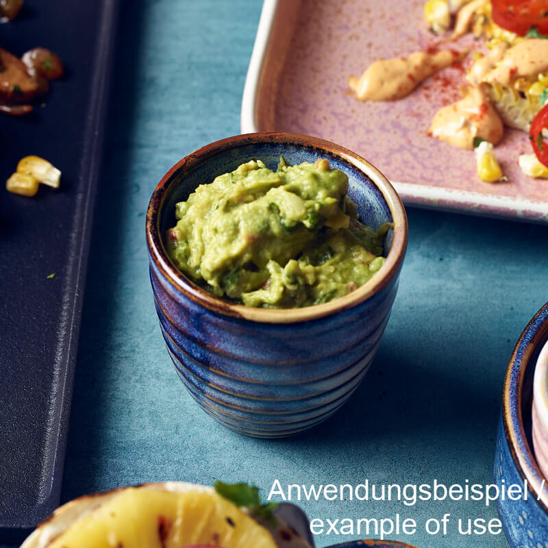 Le bol à trempette Terra Aqua Blue offre suffisamment d'espace pour les trempettes, les vinaigrettes ou les petites portions. Il est fabriqué à la main et sa couleur s'inspire du bleu profond de l'océan. Le vernis réactif rend chaque pièce unique avec des variations de couleur naturelles. Fabriqué en porcelaine entièrement vitrifiée cuite à haute température, il séduit par sa densité, sa résistance et sa surface hygiénique. Idéal pour une utilisation quotidienne dans la restauration. Conforme à la norme BS4034, qui garantit une qualité testée en matière de résistance à l'absorption d'eau et aux fissures pour la vaisselle vitrifiée destinée à l'hôtellerie.