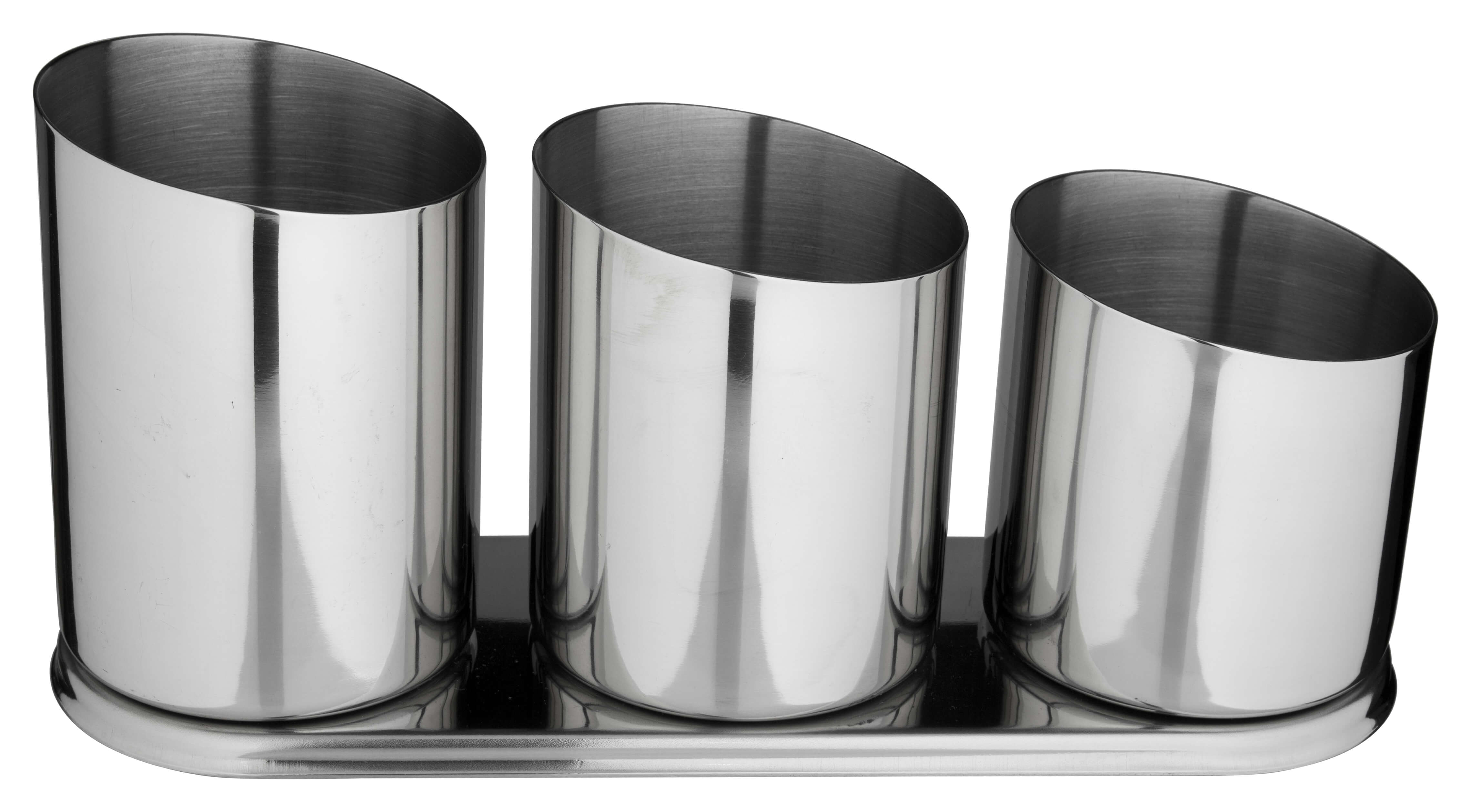 Ainsi, vous placez les pailles et les cuillères à espresso, café et latte macchiato à portée de main et de manière claire ! Cette flûte à cuillères et à porte-pailles est en acier inoxydable poli et les trois gobelets aux bords biseautés sont disposés de manière ascendante. Grâce à ce design dynamique et au matériau de haute qualité, le porte-cuillère s'intègre parfaitement dans tout bar stylé.