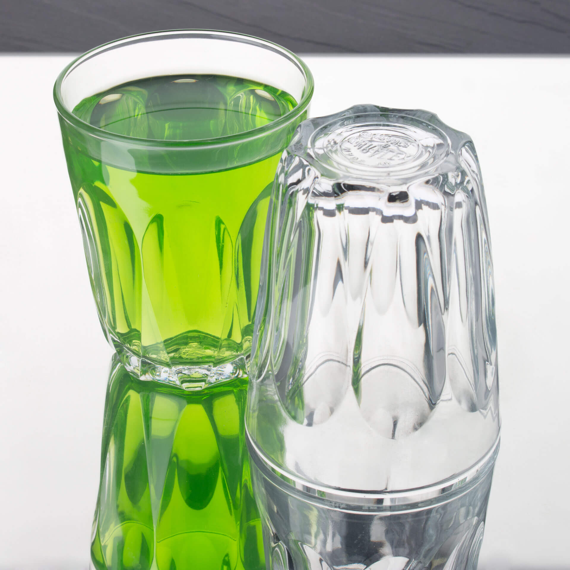 1Remarque : Le « volume total » indiqué (également appelé capacité brute) d’un verre désigne la quantité maximale de liquide pouvant être contenue jusqu’au bord. En revanche, le « volume de remplissage » (également appelé volume utile ou volume de service) décrit la quantité réellement utilisable. Les deux valeurs sont indiquées en ml ou l. En raison des conditions de production, une tolérance de ±5 % peut survenir, ce qui correspond aux normes de l’industrie et ne constitue pas un défaut.
