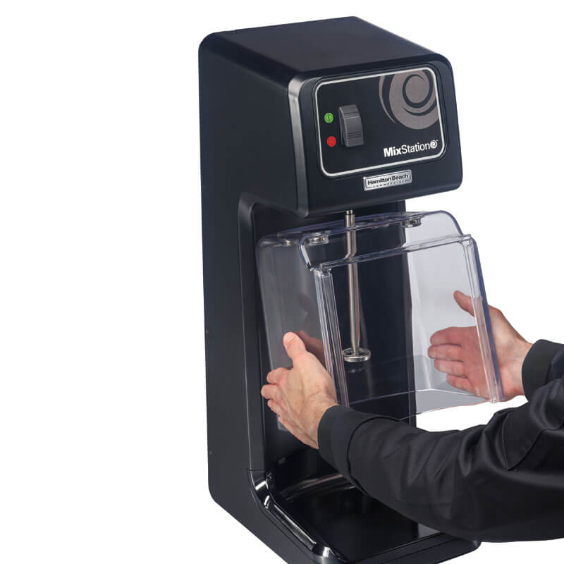 Le moteur durable est silencieux et ne nécessite pas d'entretien. Pour protéger les vêtements et l'environnement des éclaboussures, la MixStation Hamilton Beach dispose d'une protection transparente contre les éclaboussures. Celle-ci est fixée magnétiquement et peut être facilement retirée pour le nettoyage. Le bac de récupération est également facile à nettoyer, car il est amovible et tous les bords et coins sont arrondis. Ces caractéristiques vous facilitent grandement le travail hygiénique