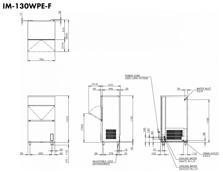 Hoshizaki Flexi Cube IM-130WPE-F - cube standard (28 x 28 x 32 mm) 108 kg