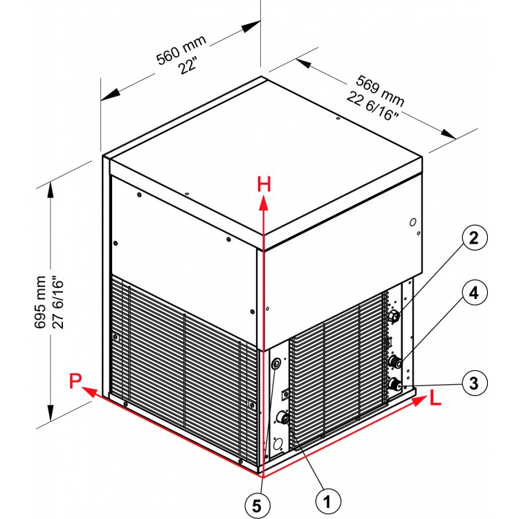 Puissance de refroidissement efficaceCette machine à glace fonctionne avec un refroidissement par air. Pour garantir des performances stables, il est essentiel que les voies d'entrée et de sortie d'air soient dégagées et que la distance par rapport au mur soit suffisante afin que la chaleur dissipée soit évacuée de manière sûre. Le réfrigérant utilisé est le R290 (propane) – économe en énergie, moderne et avec un très faible effet de serre.