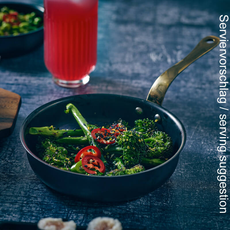 •Fabriqué en acier inoxydable •Finition industrielle vintage •Revêtement PVD noir durable •Poignée en laiton élégante •Idéal pour les accompagnements, les entrées et les desserts