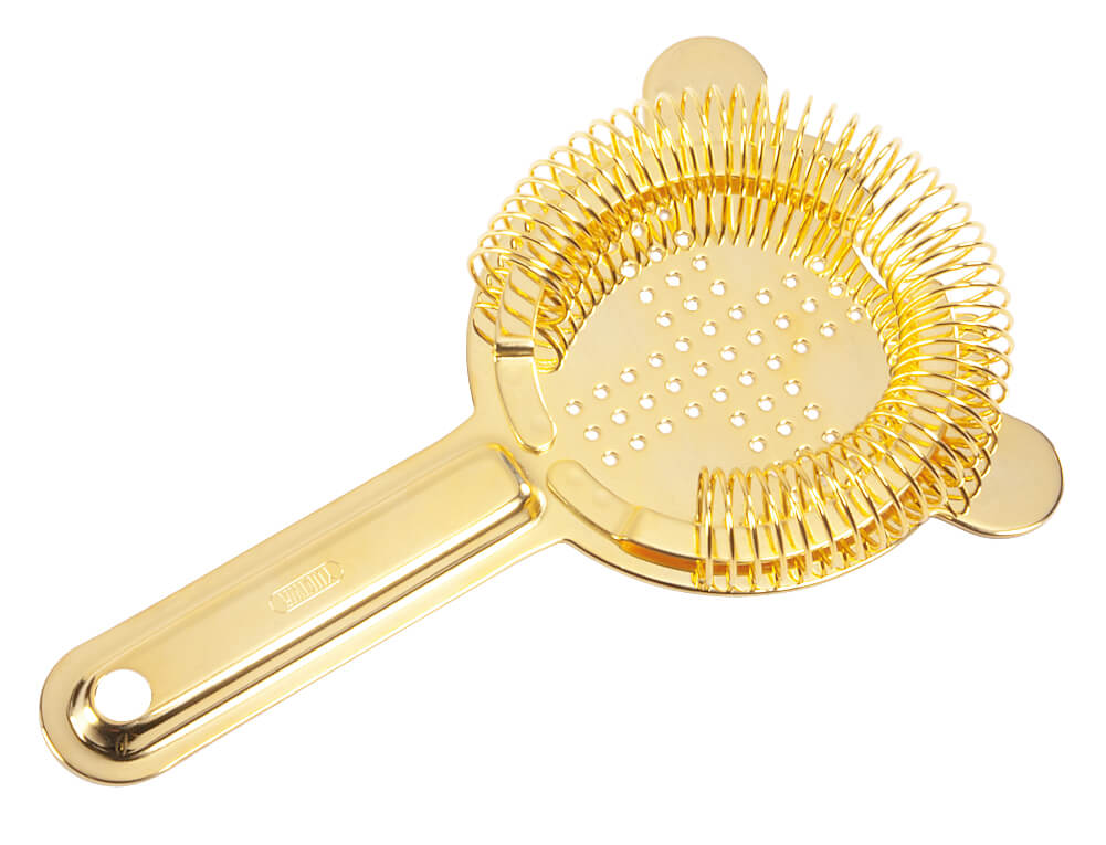 Pour les événements ou les invités très spéciaux : les ustensiles de bar dorés ! Utilisez cette passoire de bar de haute qualité en acier inoxydable poli dans les établissements gastronomiques ou offrez-la en cadeau. De plus, la poignée est particulièrement pratique et comporte une encoche et un trou qui vous permettent d'accrocher et de saisir facilement cette passoire de bar. Grâce à ses deux supports arrondis, la passoire repose parfaitement sur le verre à mélange ou le shaker. Sur la face inférieure de cet ustensile de bar, vous trouverez une spirale en acier inoxydable à mailles serrées, qui peut être facilement retirée. Cela rend le nettoyage de cette passoire simple et pratique. Enfin, les trous dans la passoire à barres représentent une croix raccourcie. Dans l'ensemble, c'est un ustensile de bar exceptionnel et fiable.