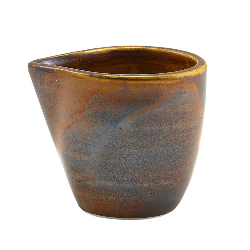 La cruche Terra Rustic Copper de 90 ml séduit par ses tons chauds couleur cuivre antique et ses nuances patinées raffinées, qui apparaissent lors de la cuisson à haute température et rendent chaque pièce unique. Son émail spectaculaire confère au lait, aux sauces ou aux vinaigrettes une présentation élégante, rustique et raffinée. Fabriqué en porcelaine vitrifiée selon la norme BS4034, ce pot est idéal pour une utilisation intensive dans les restaurants et les hôtels. Ses bords roulés augmentent sa résistance, tandis que son pied poli protège les surfaces sensibles. De plus, il passe au lave-vaisselle et au micro-ondes, ce qui facilite les processus de service.