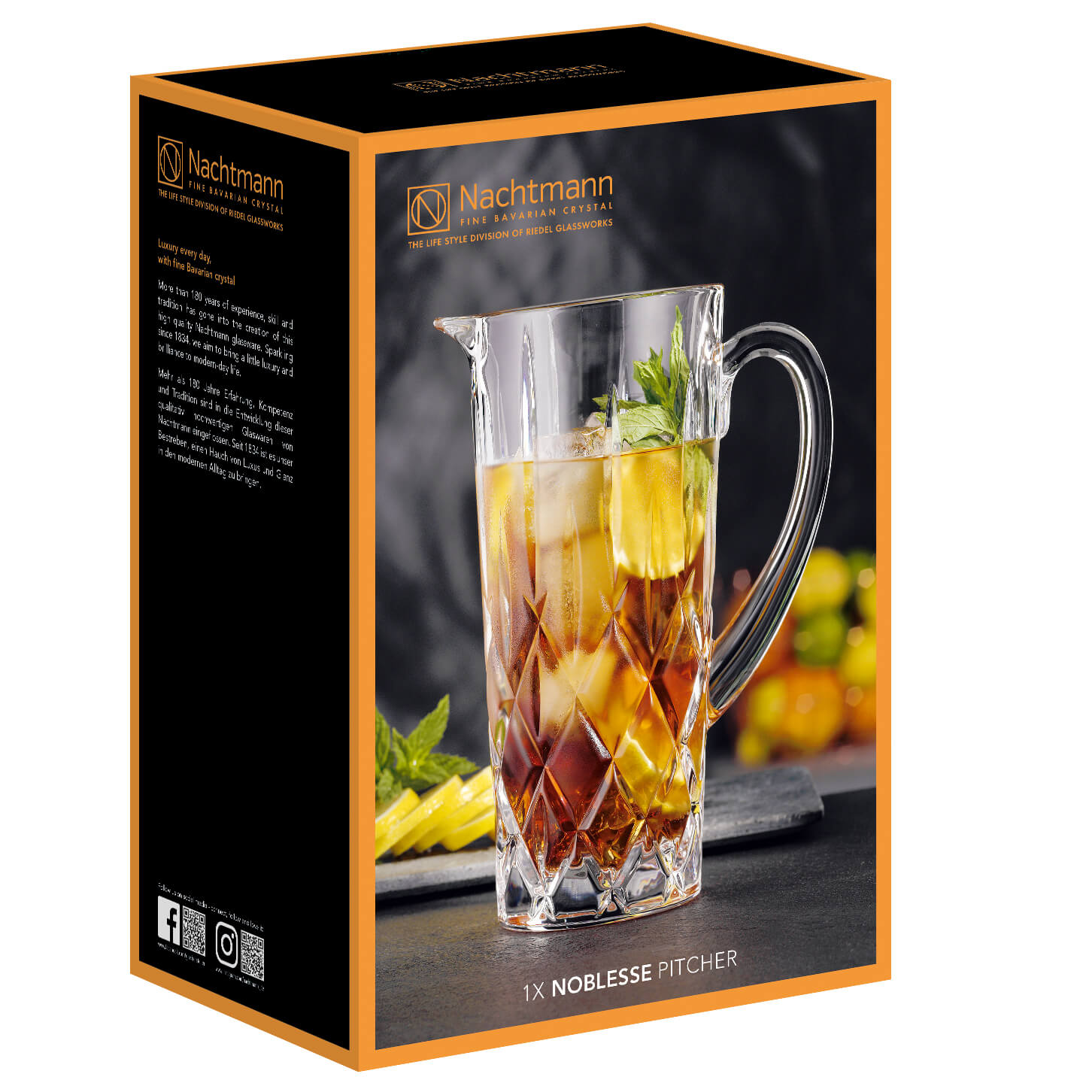 Le pichet a une contenance de 1190 ml. Le fond lourd et le verre épais confèrent au pichet en cristal une grande valeur et une grande stabilité.