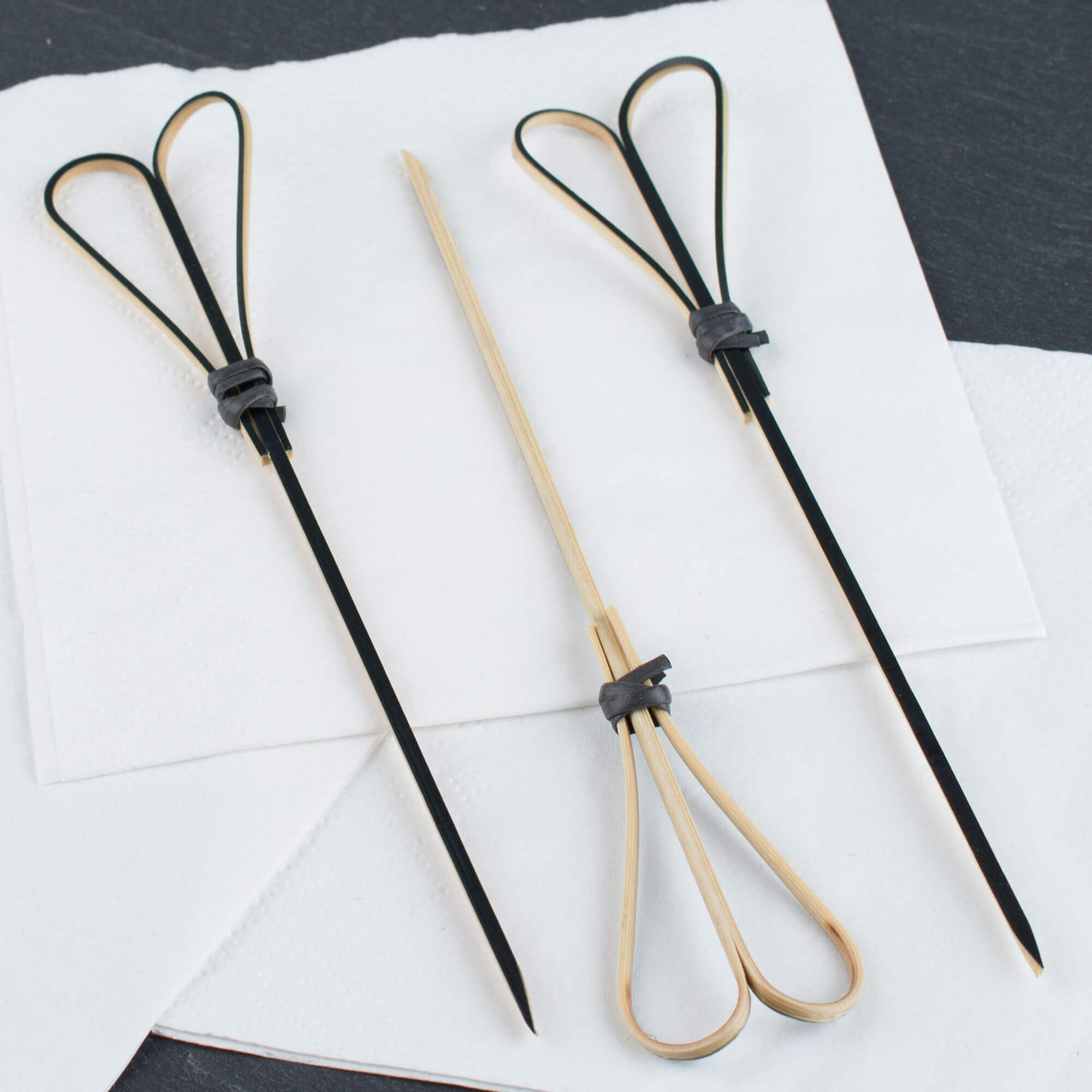 Les brochettes de 15 cm de long sont élégamment peintes en noir sur un côté et ont la forme d'un cœur. Elles se laissent ainsi facilement saisir et plusieurs fruits ou sucreries peuvent y être empalés.