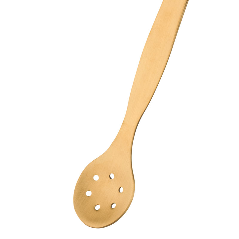 Ce bar tool doré apporte une touche d'élégance à la préparation de vos cocktails tout en étant extrêmement pratique. Il combine en effet une pince et une cuillère. Vous pouvez ainsi passer d'une fonction à l'autre d'un simple geste. Les rainures à l'intérieur de la pince et sur la poignée assurent une bonne prise en main et maintiennent les ingrédients en place. La pince à épiler avec cuillère est en acier inoxydable, mesure environ 27 cm de long et la cuillère est perforée.