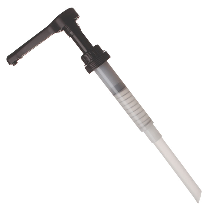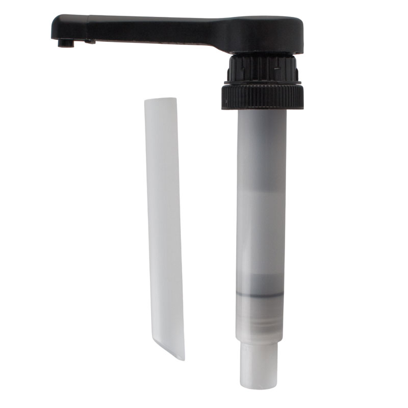 Au total, la pompe dépasse d'environ 26,5 cm dans la bouteille. Le tuyau est coupé en biais dans sa partie inférieure afin que la purée de fruits puisse être pompée encore plus facilement vers le haut.