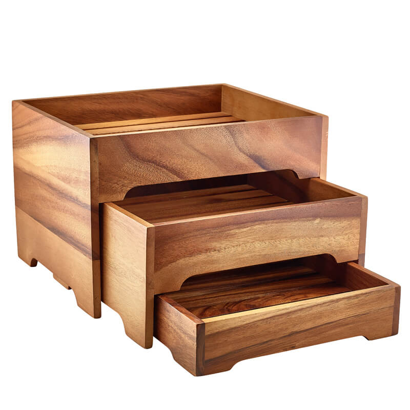 Présentoir à 3 niveaux, bois d'acacia - GN 1/2