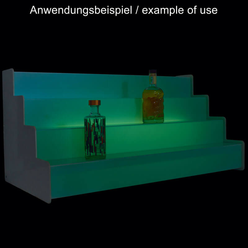 Informations sur le produit "Présentoir à bouteilles en forme d'escalier 1000x440mm - LED multicolore"
