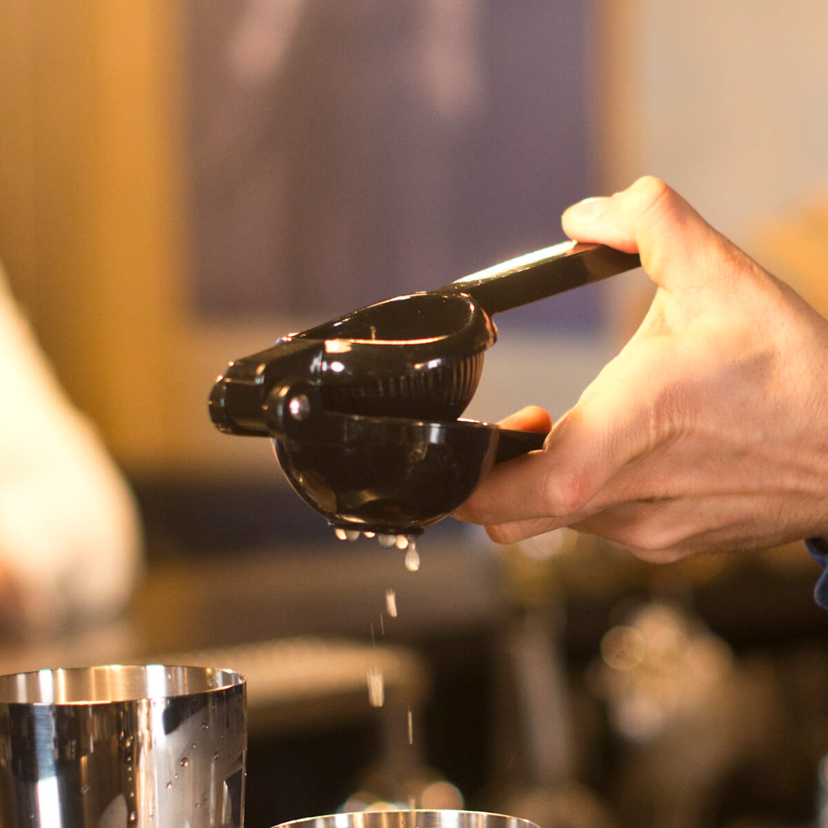 Coupez le citron vert en deux et placez-en un dans le presse-agrumes, face coupée vers le bas, et pressez le fruit en pressant les deux bras ensemble. Vous constaterez que les pépins restent dans le presse-agrumes. Un nettoyage à la main est fortement recommandé pour protéger la couche noire.