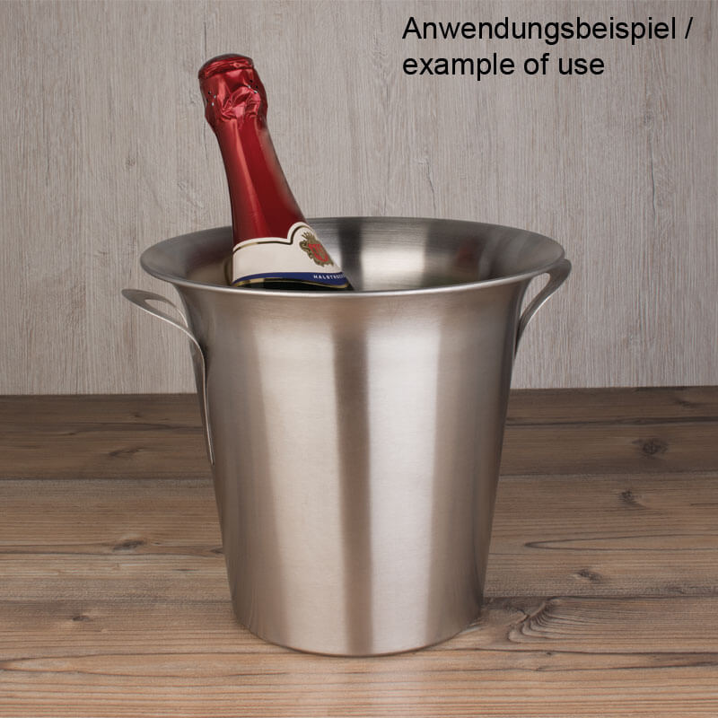 Contrairement à d'autres seaux à bouteilles, le design est assez dépouillé - les poignées de transport sont solidement fixées au corps du seau et restent simples et non décorées dans le style du design global. De plus, avec un diamètre de 22 cm à l'ouverture à 13,5 cm au fond, il est de taille moyenne et constitue un bon choix pour les bouteilles d'eau ou toutes sortes de boissons non alcoolisées, en plus du champagne ou du vin mousseux. Avec une hauteur totale de seulement 20 cm, il ne prend pas trop de place sur la table.