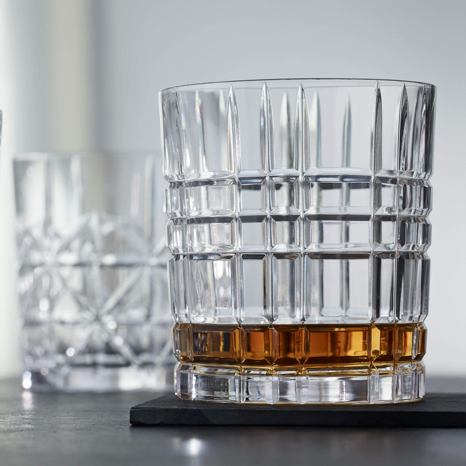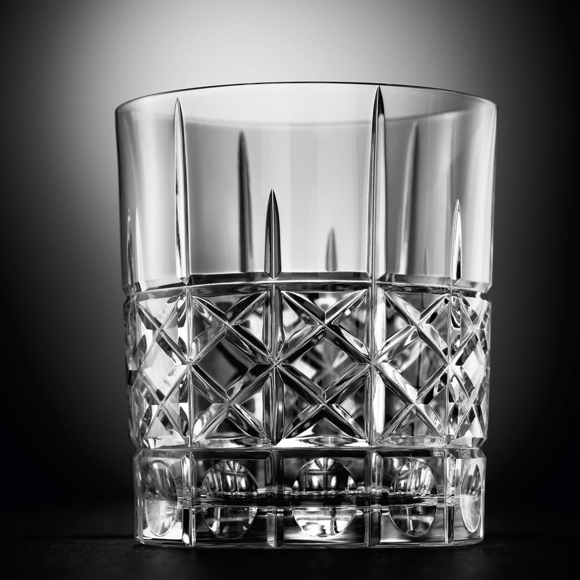 Mais comment cette magnifique pièce s'harmoniserait-elle avec un ensemble de verres à whisky standard ?! Inutile de vous poser la question, car le coffret est complété par quatre verres parfaitement assortis. Ceux-ci s'accordent tous à merveille avec la carafe Highland, mais présentent chacun un décor taillé différent, pour que l'ennui n'ait pas sa place !