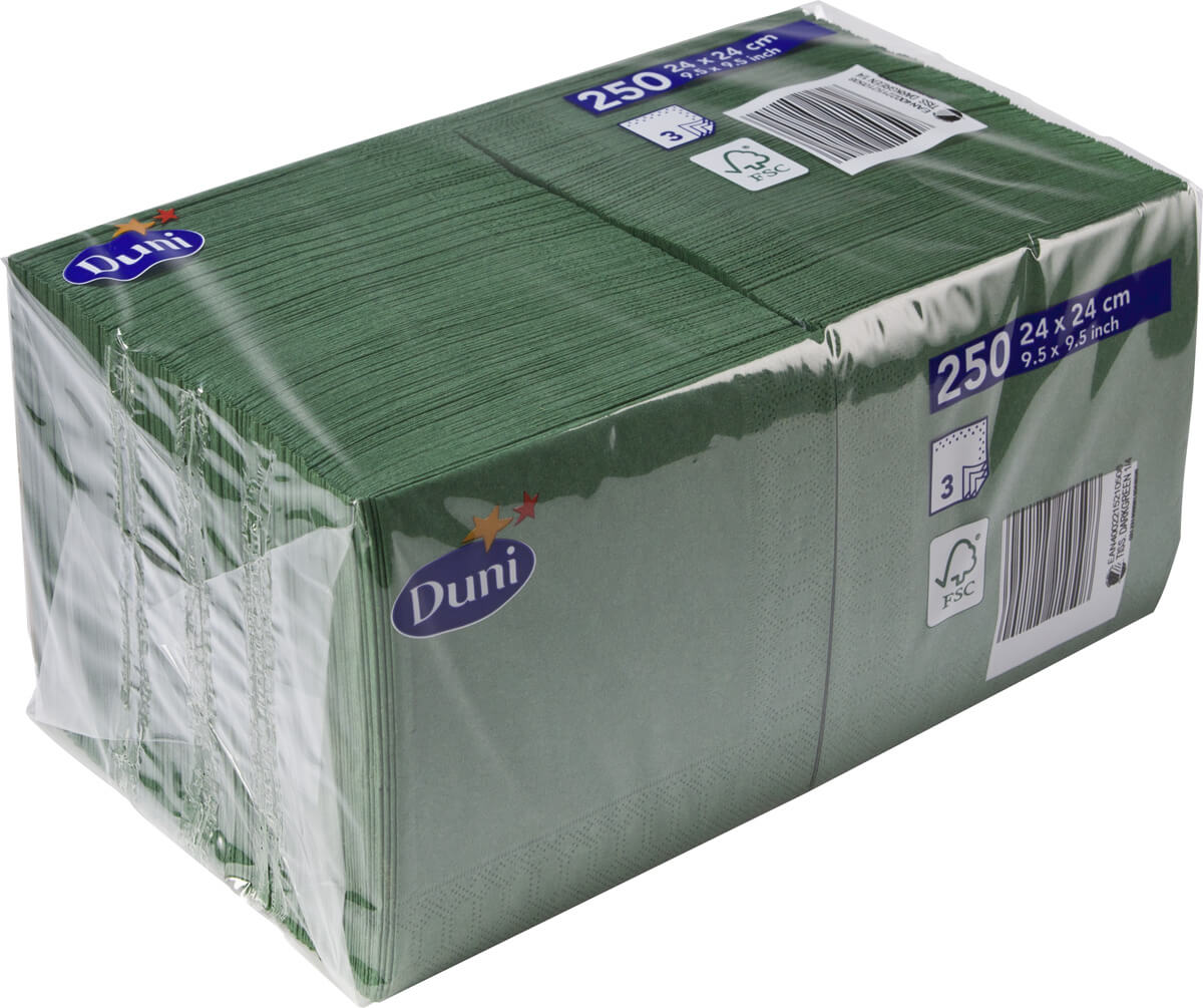 Informations sur le produit "Serviettes cocktail Duni, cellulose, 3 plis, 24x24cm - vert foncé (250 pcs.)"