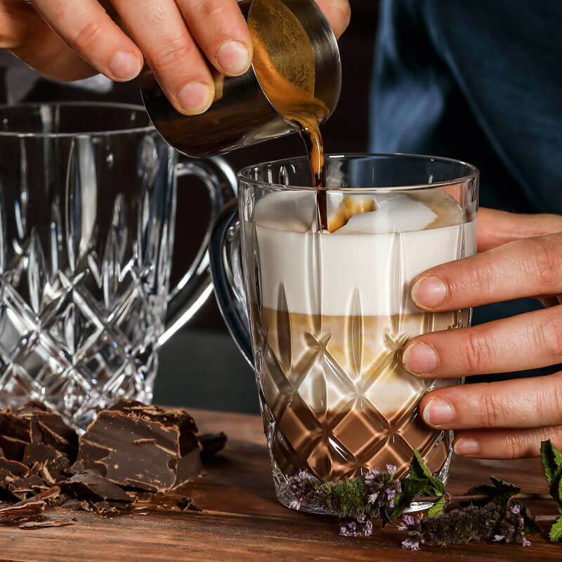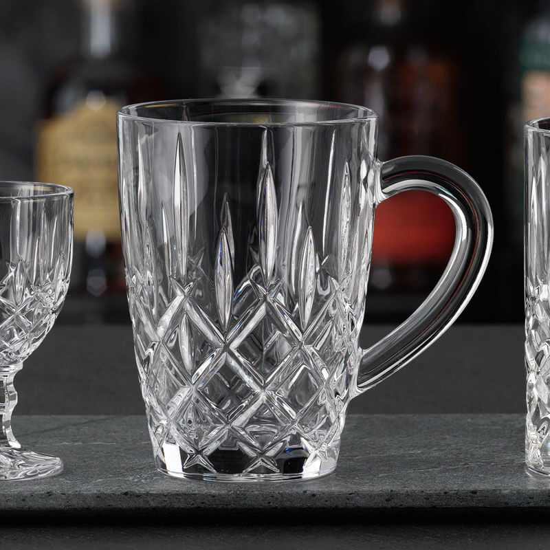 Le gobelet à thé ou à café de la célèbre série 'Noblesse' de Nachtmann est décoré d'un motif durable de losanges. L'anse est suffisamment grande pour que le gobelet chaud puisse être tenu en toute sécurité.