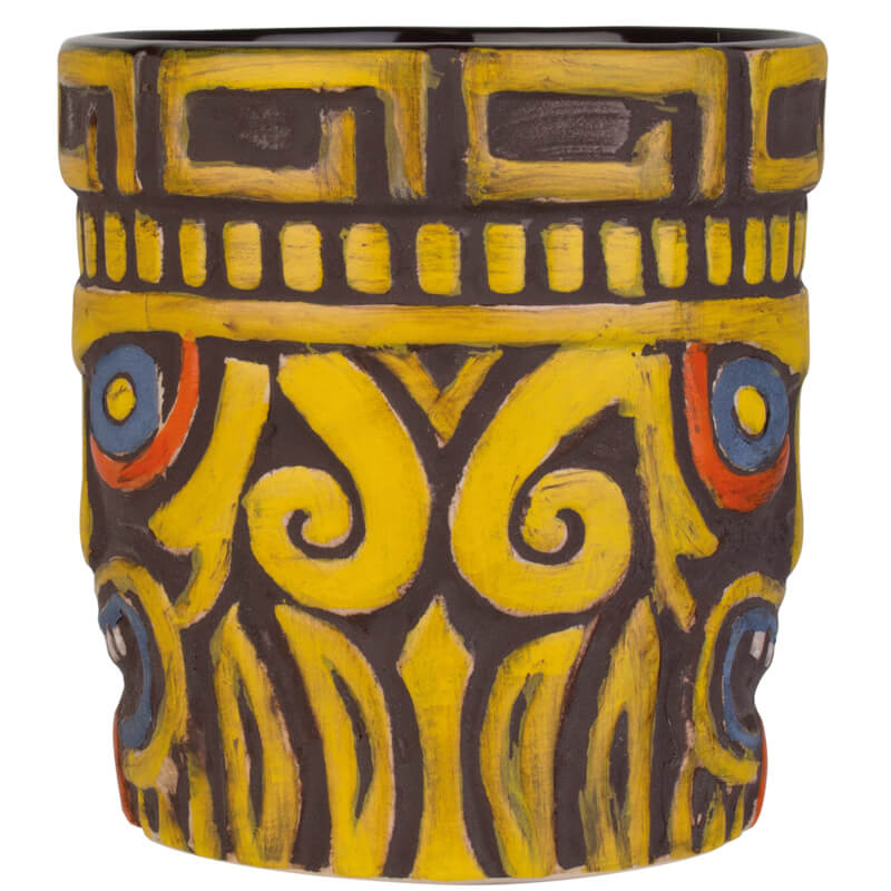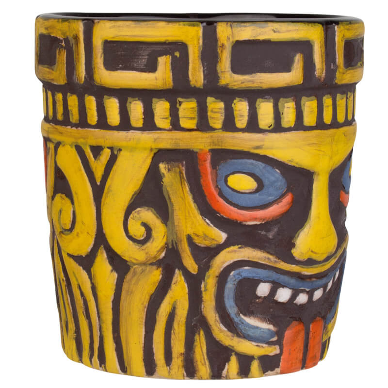 Les origines de la culture tiki remontent aux figures cérémonielles de Polynésie, symboles des dieux, des ancêtres et des esprits protecteurs. Dans l'esthétique tiki moderne, populaire depuis les années 1930, ce mysticisme perdure avec des bars colorés, des décorations d'inspiration tropicale et des gobelets pleins de caractère comme celui-ci.