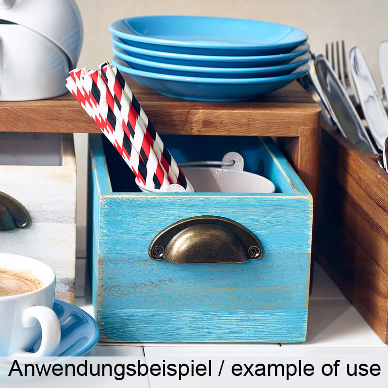 •En bois d'acacia •Avec de jolies poignées en laiton •Idéal pour ranger les épices et les couverts à table