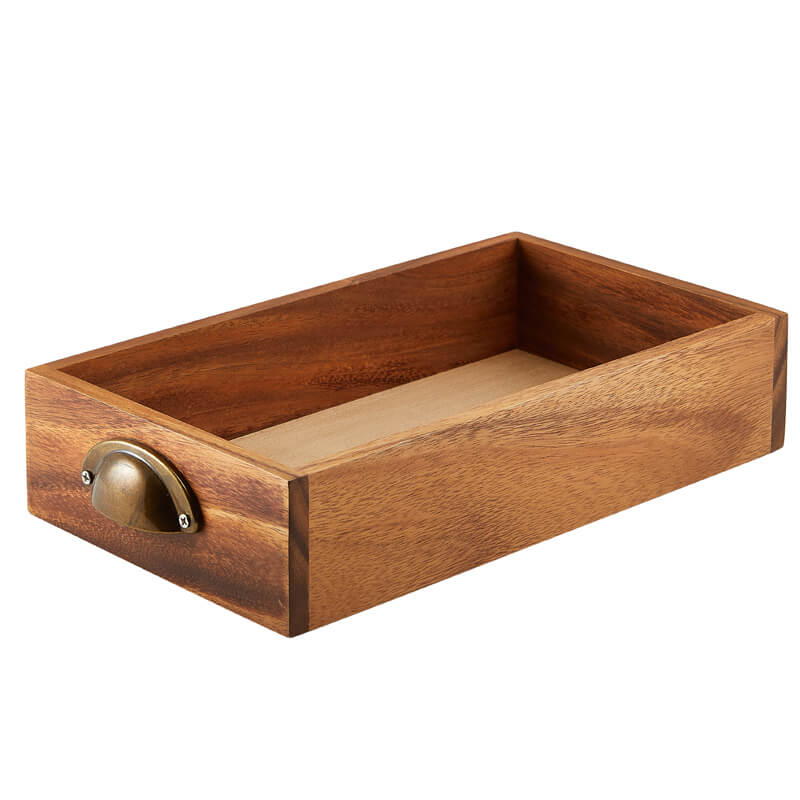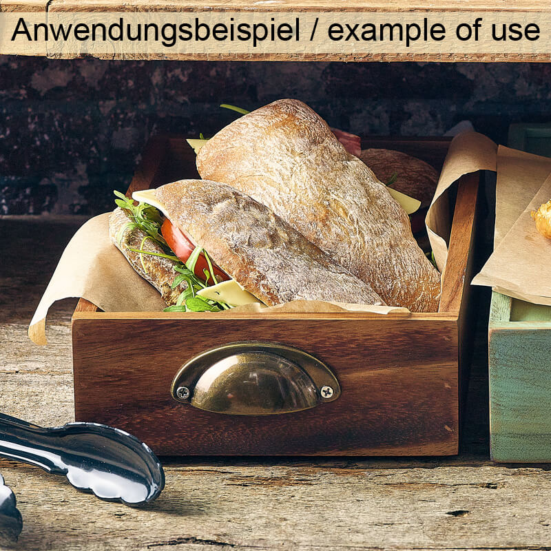 •En bois d'acacia •Finition en bois d'acacia naturel •Taille GN1/3 •Avec poignées en laiton attrayantes