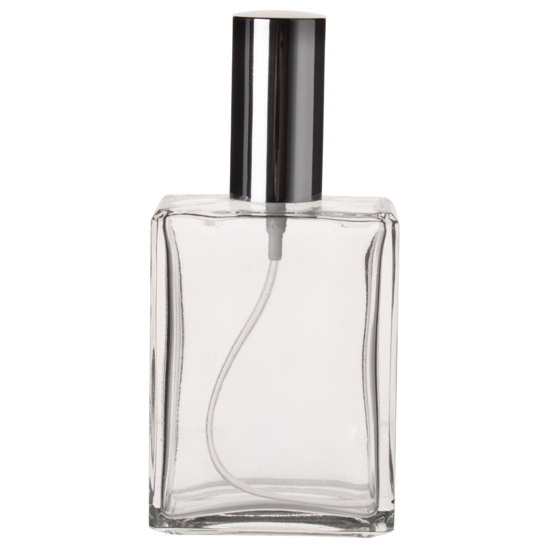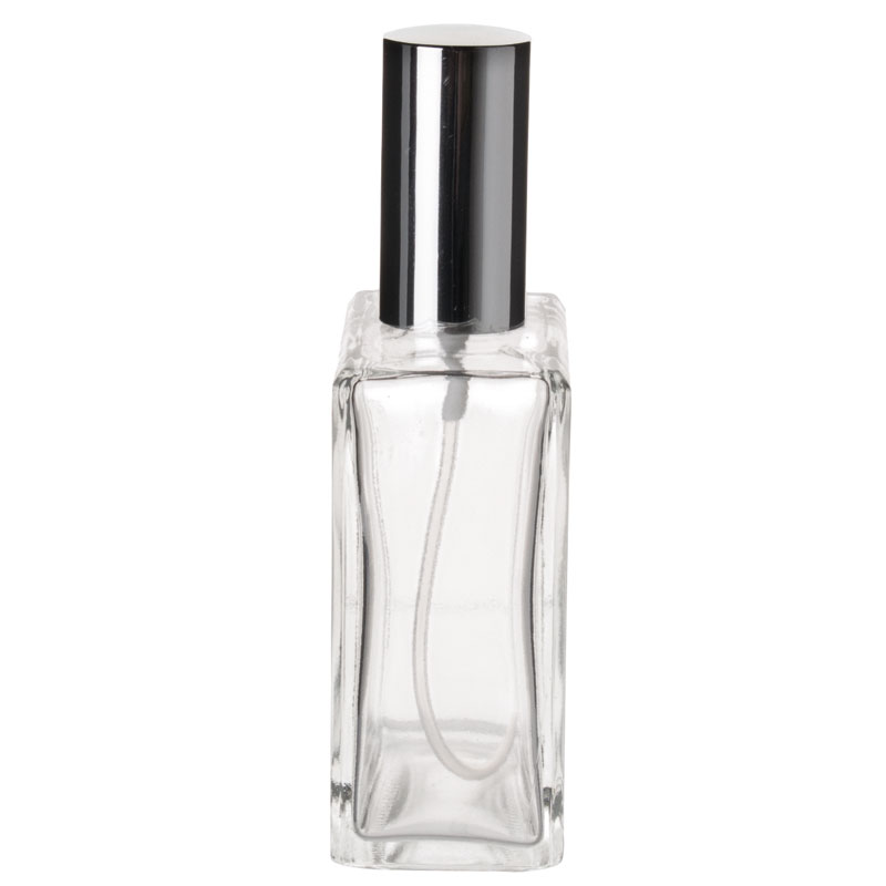 Le vaporisateur est en verre, tandis que la tête de pulvérisation et le couvercle sont en plastique chromé. L'ensemble présente un aspect élégant pour un prix relativement bas.