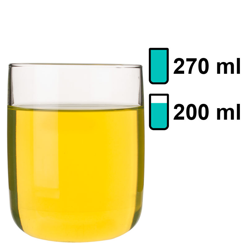 1Remarque : Le « volume total » indiqué (également appelé capacité brute) d’un verre désigne la quantité maximale de liquide pouvant être contenue jusqu’au bord. En revanche, le « volume de remplissage » (également appelé volume utile ou volume de service) décrit la quantité réellement utilisable. Les deux valeurs sont indiquées en ml ou l. En raison des conditions de production, une tolérance de ±5 % peut survenir, ce qui correspond aux normes de l’industrie et ne constitue pas un défaut.