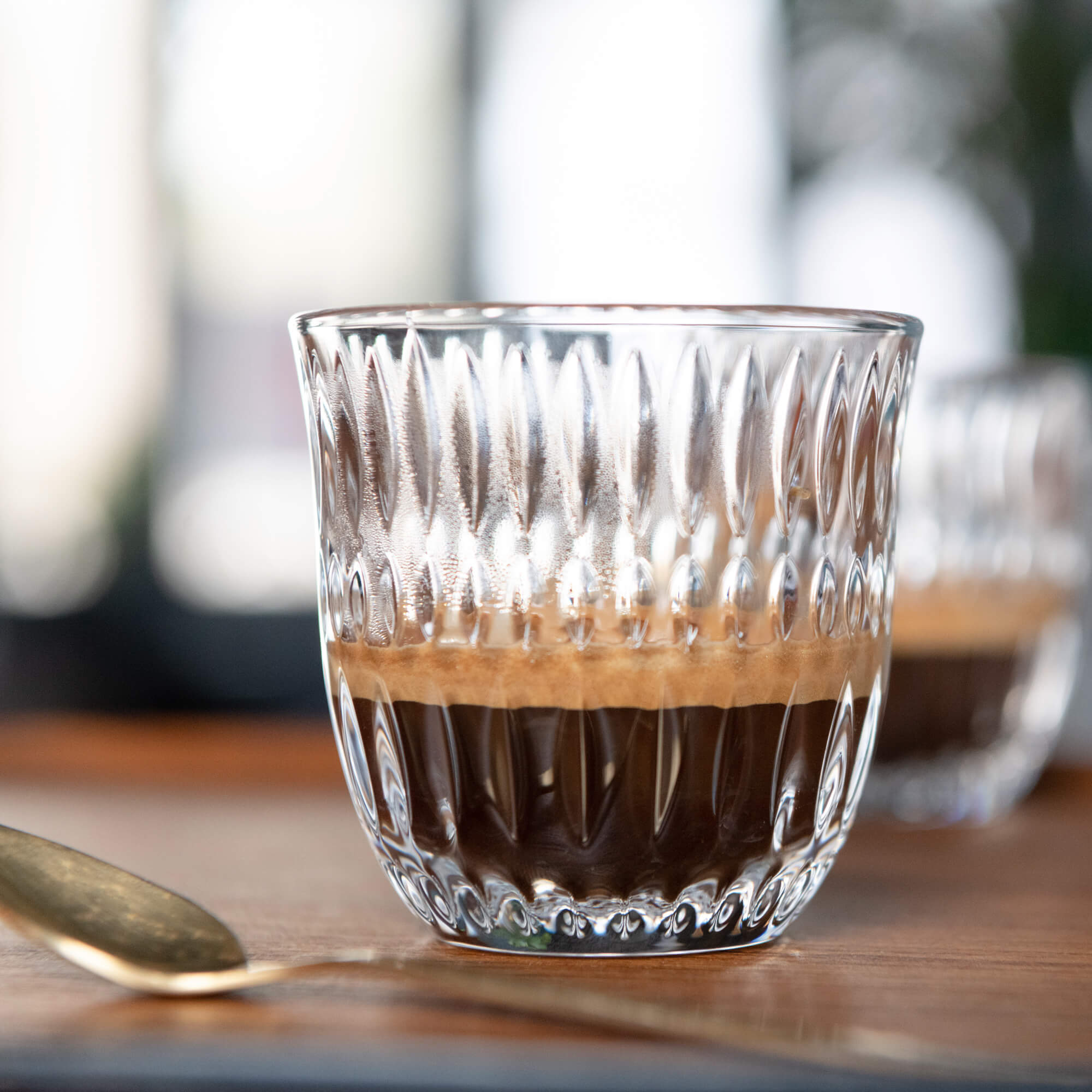 Outre les boissons au café, le verre à espresso/doppio convient par exemple pour le thé ; ou vous utilisez simplement un deuxième verre à espresso "Ethno" pour servir de l'eau plate à vos invités avec l'espresso.