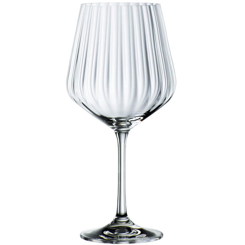 Ce verre à gin&tonic attrayant de Nachtmann convient parfaitement à la dégustation élégante de gin tonic, de cocktails et d'autres boissons à base d'alcool. Le verre à coupe convainc surtout par son design de rainures soufflées. Il s'étend verticalement sur l'ensemble du gobelet et confère au verre un aspect extravagant et tridimensionnel. Ainsi, le verre à gin tonic présente les boissons pétillantes de manière à la fois esthétique et captivante. Grâce à ses parois épaisses et à sa forme ventrue, le calice est agréablement lourd dans la main et invite à le faire tourner. Le pied de verre relativement épais, situé à l'autre extrémité de la tige concave, constitue un contrepoids équilibrant.