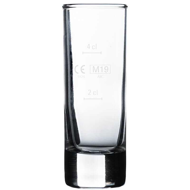 Forme cylindrique, fond épais, bord parfaitement arrondi et également disponible avec ou sans calibrage de 2 et 4 cl. Ce verre à shot est donc particulièrement adapté au service de spiritueux clairs et très froids, comme la vodka et l'aquavit, et peut être placé dans n'importe quel réfrigérateur. C'est pourquoi nous recommandons ce verre à tous les clubs, bars et restaurants qui servent des spiritueux clairs et très alcoolisés.