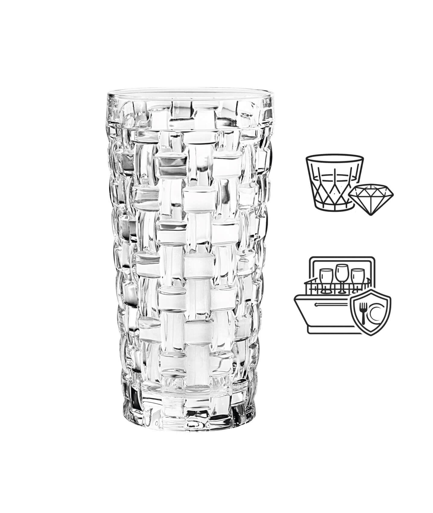 Le verre à long drink "Bossa Nova" reprend cet état d'esprit. La forme traditionnelle du célèbre verre à long drink est associée à l'aspect classique de la structure en osier "tressée". Le résultat : un verre en cristal qui scintille en d'innombrables facettes et réfracte l'éclat de la lumière de manière décorative.