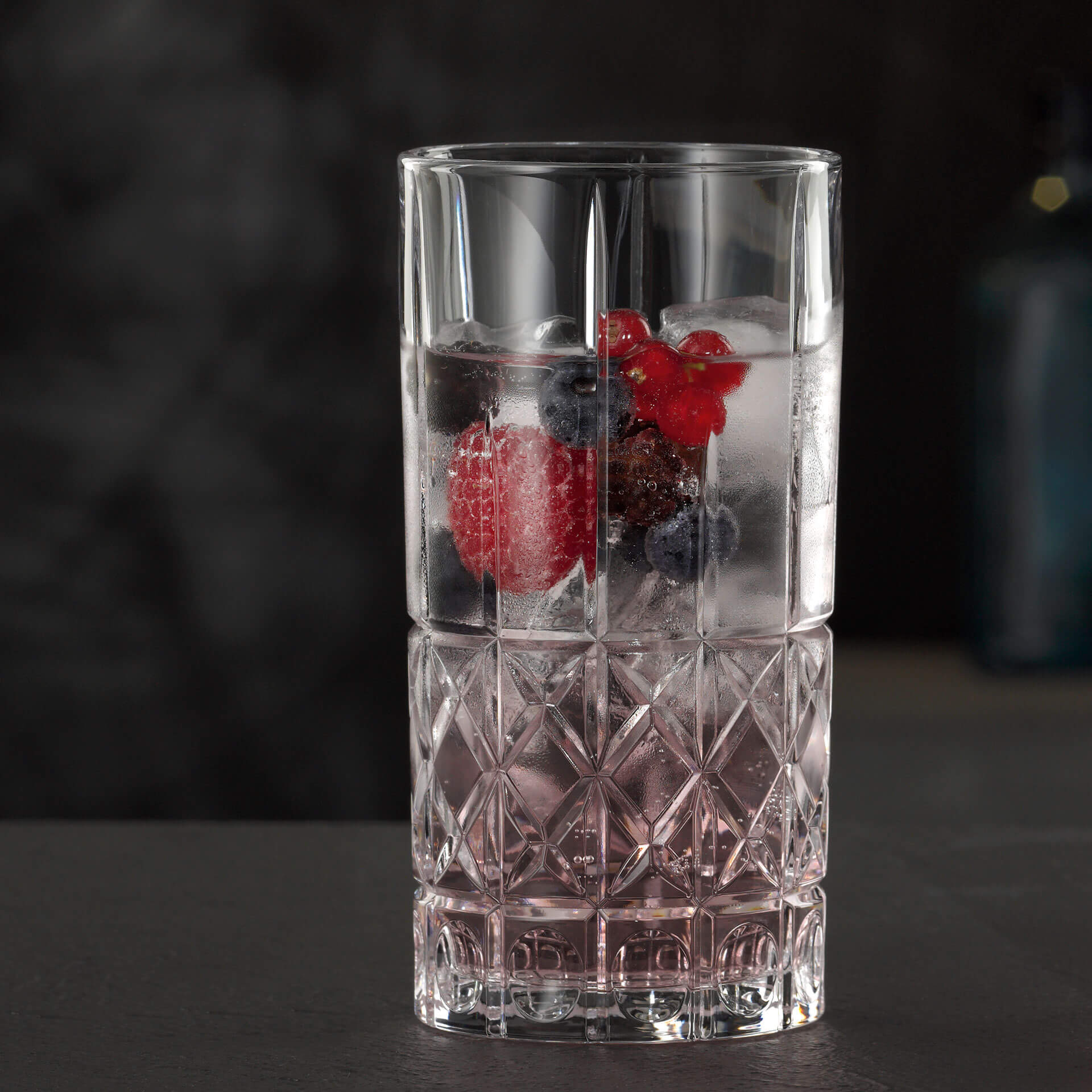 Ce verre vous permet de servir des boissons mixtes, des cocktails et des soft drinks de manière extravagante et d'apporter un changement attrayant sur le comptoir. Petit conseil : combinez également la coupe "Diamond" avec les trois autres designs de la série Highland : "Cross", "Square" et "Straight".