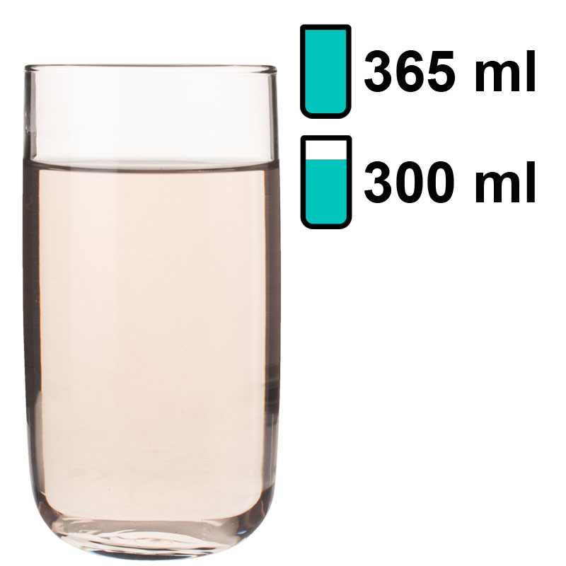 1Remarque : Le « volume total » indiqué (également appelé capacité brute) d’un verre désigne la quantité maximale de liquide pouvant être contenue jusqu’au bord. En revanche, le « volume de remplissage » (également appelé volume utile ou volume de service) décrit la quantité réellement utilisable. Les deux valeurs sont indiquées en ml ou l. En raison des conditions de production, une tolérance de ±5 % peut survenir, ce qui correspond aux normes de l’industrie et ne constitue pas un défaut.