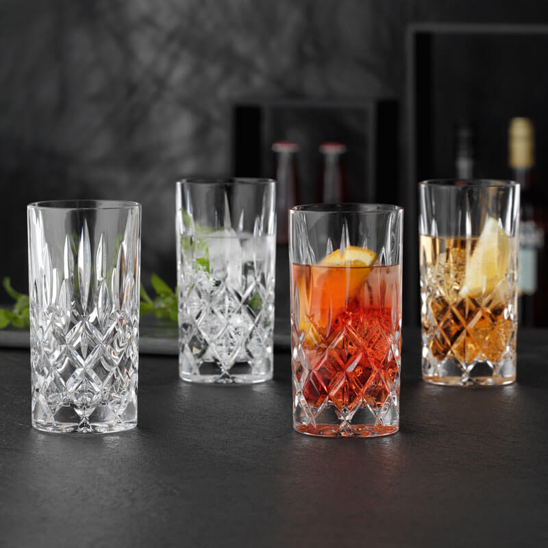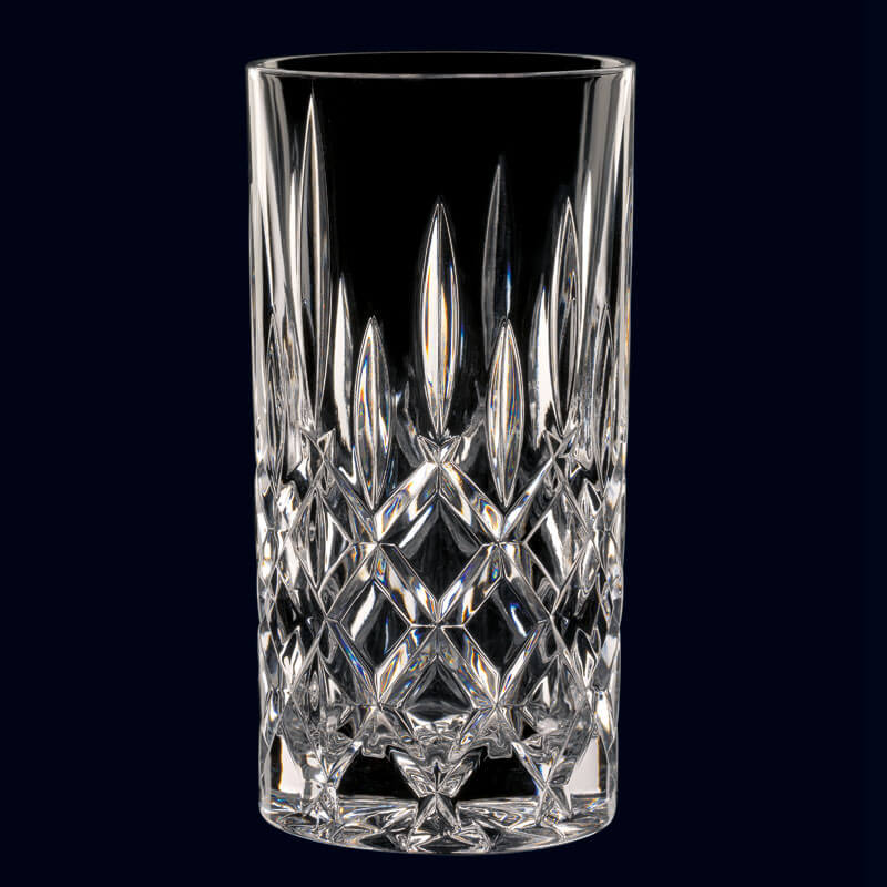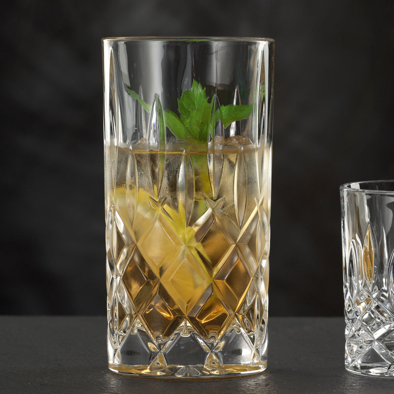 Outre les long drinks et les cocktails, le verre à long drink "Noblesse" est également idéal pour les boissons non alcoolisées dans les bars ou à la maison. Le décor classique de losanges et d'ellipses s'adapte à de nombreux styles d'aménagement et reflète la lumière de manière attrayante.