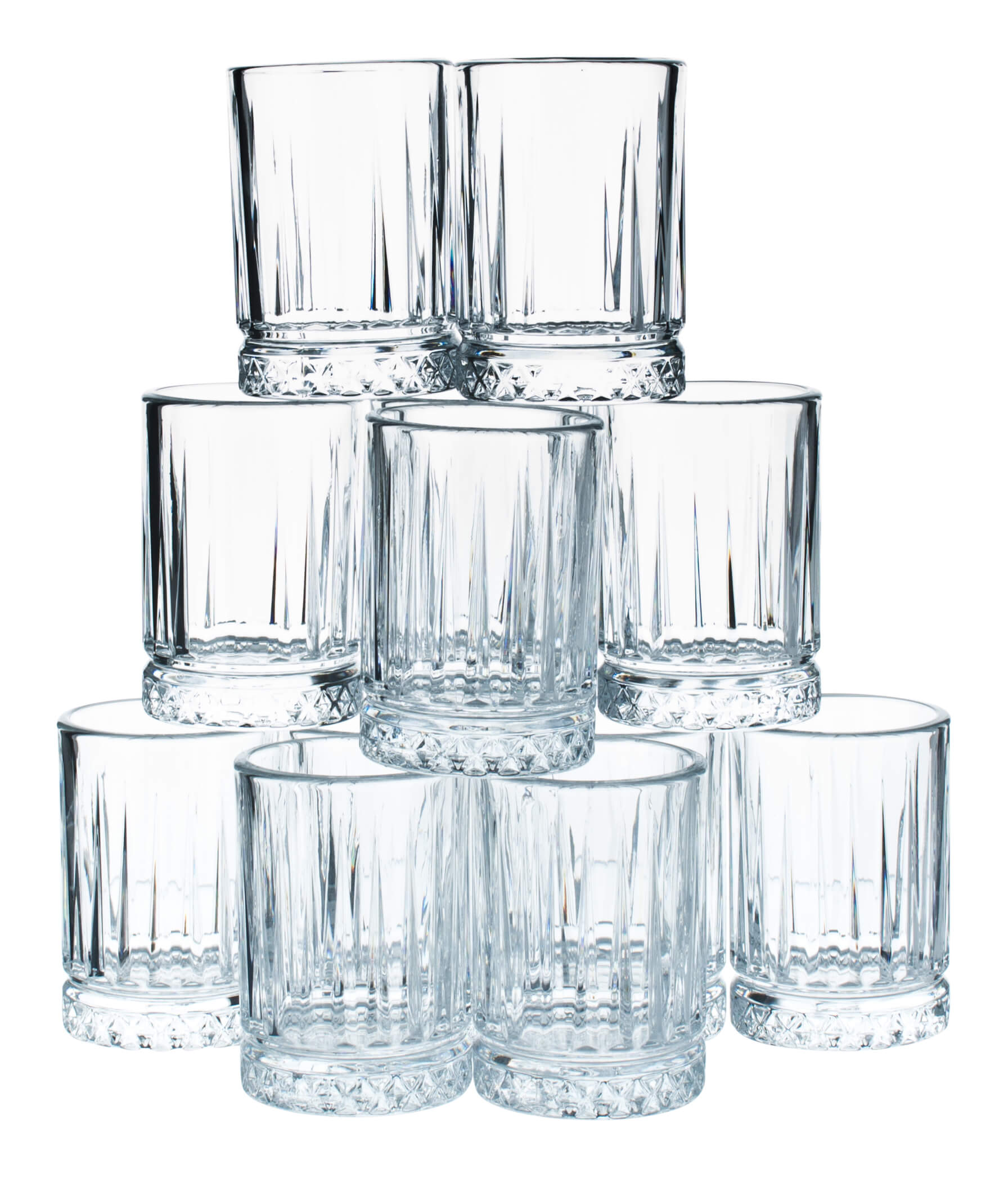 Set de 12 verres à shot de la série "Elysia" de Pasabahce.les verres sont intemporels grâce aux décorations rectilignes sur la face extérieure et tiennent bien en main. Grâce au 'safety rim', on peut trinquer sans problème avec élan.