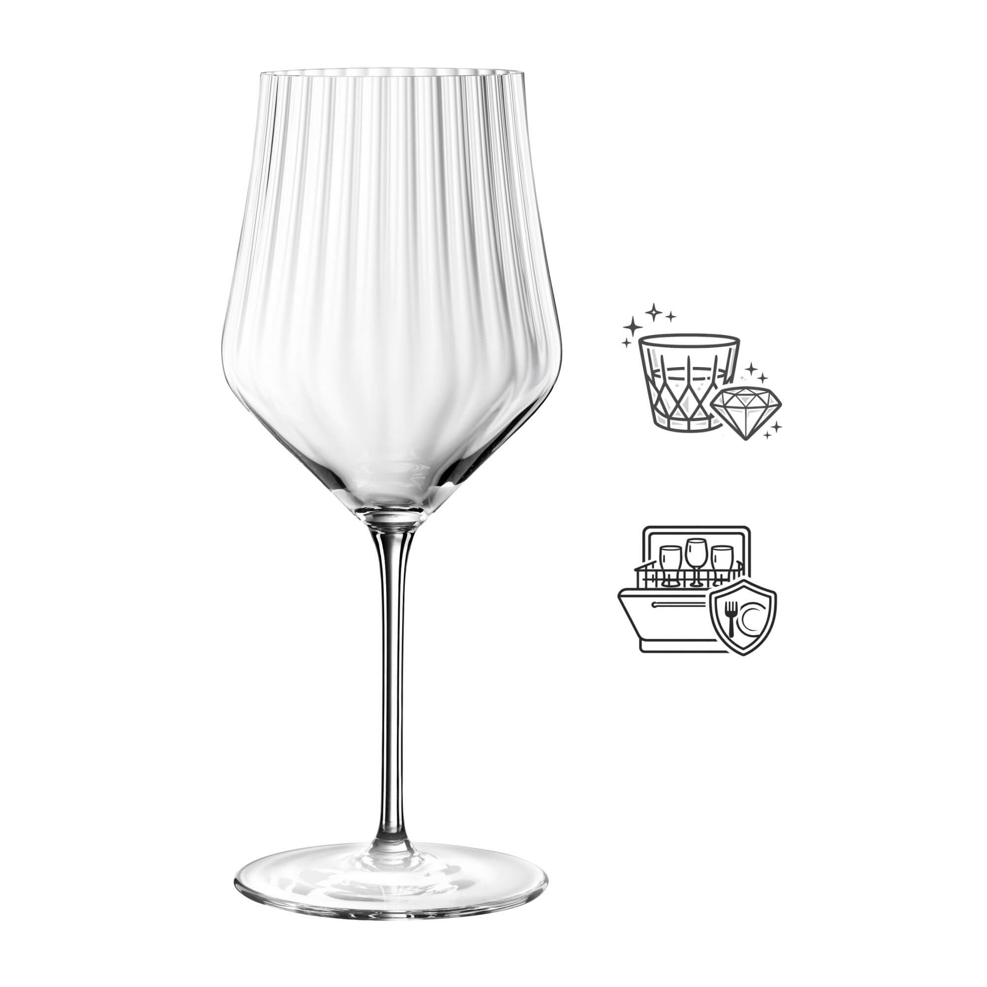 Le verre à vin rouge Apero de la maison Spiegelau ne séduit pas seulement par son intérieur cannelé qui lui confère un look stylé et une sensation de neutralité totale - sa capacité généreuse de 640 ml laisse en outre à vos vins suffisamment d'espace pour respirer !