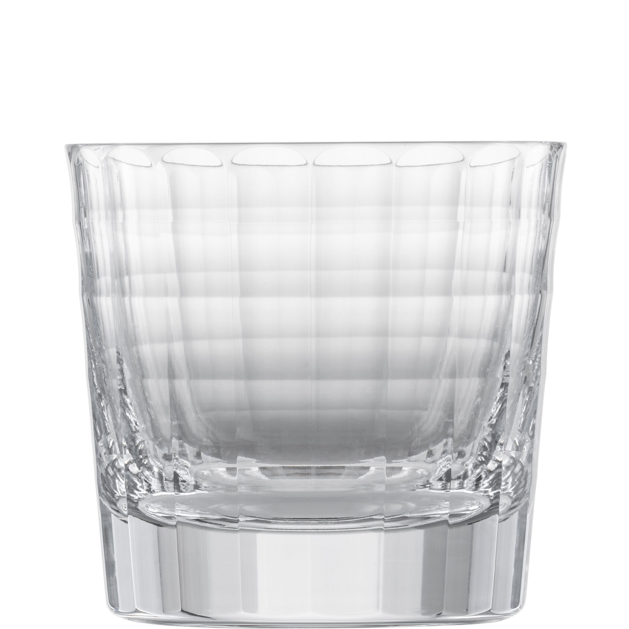 La qualité supérieure du verre à whisky de la collection "Hommage Carat" de Zwiesel Glas se reflète aussi bien dans son design que dans le matériau travaillé à la main. Le tumbler a un volume généreux de 384 ml et offre ainsi suffisamment de place pour le whisky ou le scotch sur beaucoup de glace. Les glaçons à l'intérieur s'harmonisent alors avec le motif carré de la taille du verre. Celui-ci est très élégant malgré sa rectitude, car il rappelle le diamant taillé - d'où le nom français de la série. Le verre a une hauteur de 9,1 cm, un bord de 9,6 cm et un fond en verre massif qui s'incline légèrement de manière convexe vers l'intérieur. Les côtés de la glace de fond sont également taillés et interagissent ainsi directement avec le manteau du tumbler en verre de cristal.