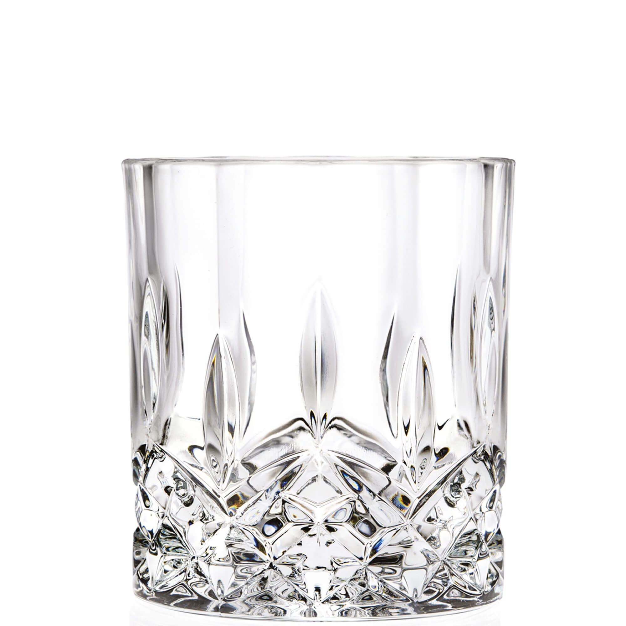 Ce petit verre à whisky fait partie de la somptueuse série "Opera" du fabricant italien RCR. Tant le verre en cristal lourd que la décoration avec une structure raffinée confèrent au tumbler une aura particulièrement pompeuse et précieuse. Le design de la structure rappelle un lustre imposant et assure ainsi un éclat particulier. Vers le bas, le petit tumbler se rétrécit à peine jusqu'à ce qu'il se termine par un fond cylindrique. En raison de sa petite taille, le verre à whisky convient pour servir du whisky et des shortdrinks, ainsi qu'un bon vieux Old Fashioned. Il reste bien sûr de la place pour les glaçons.